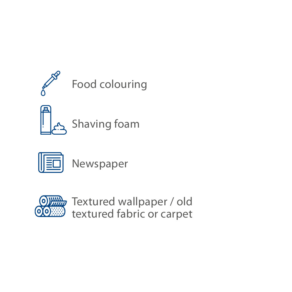 Indoor play: Lay down an old sheet or newspaper for your child to work on if you’re doing this activity indoors.